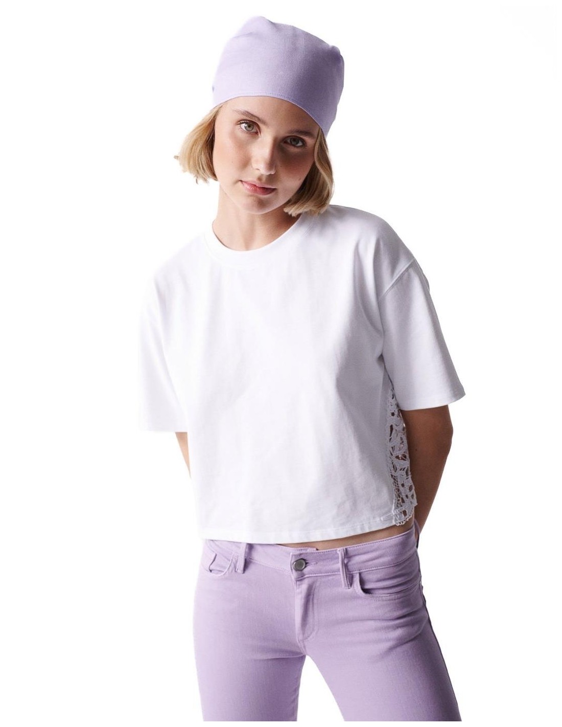 Esta camiseta de SALSA está hecha de algodón ligero y suave para la máxima comodidad. Tiene un diseño atractivo con un cuello redondo y mangas cortas, perfecto para un día casual. Esta es la camiseta para tener en tu armario para cuando quieras un toque fresco y moderno con una leve sensación de nostalgia.