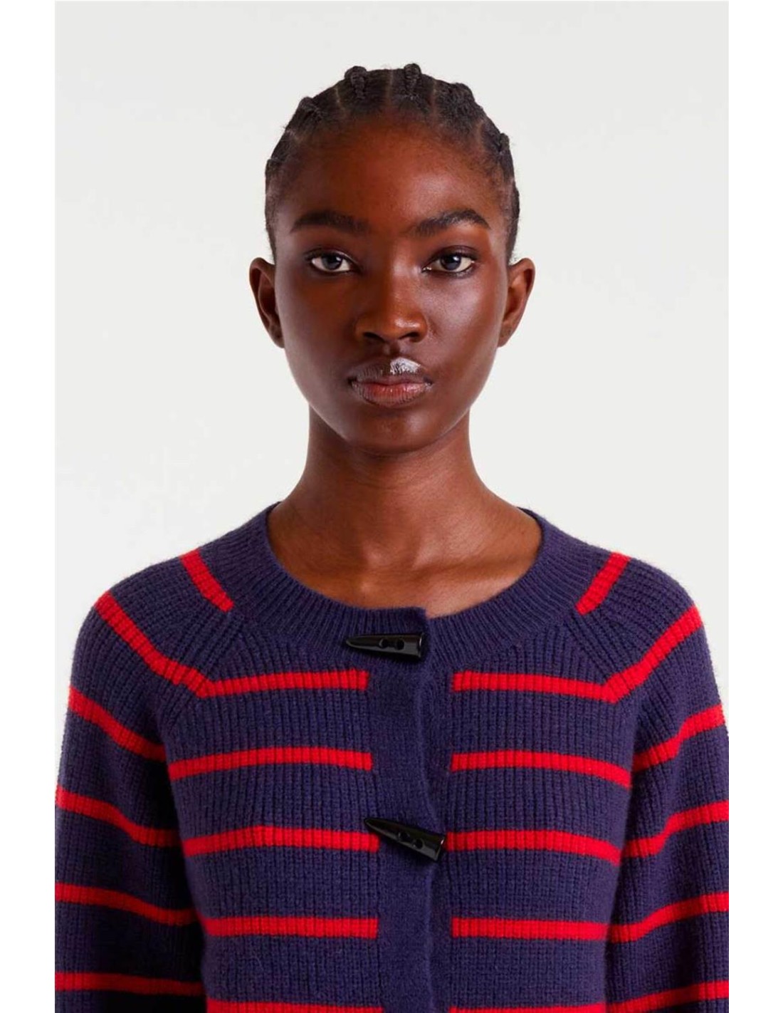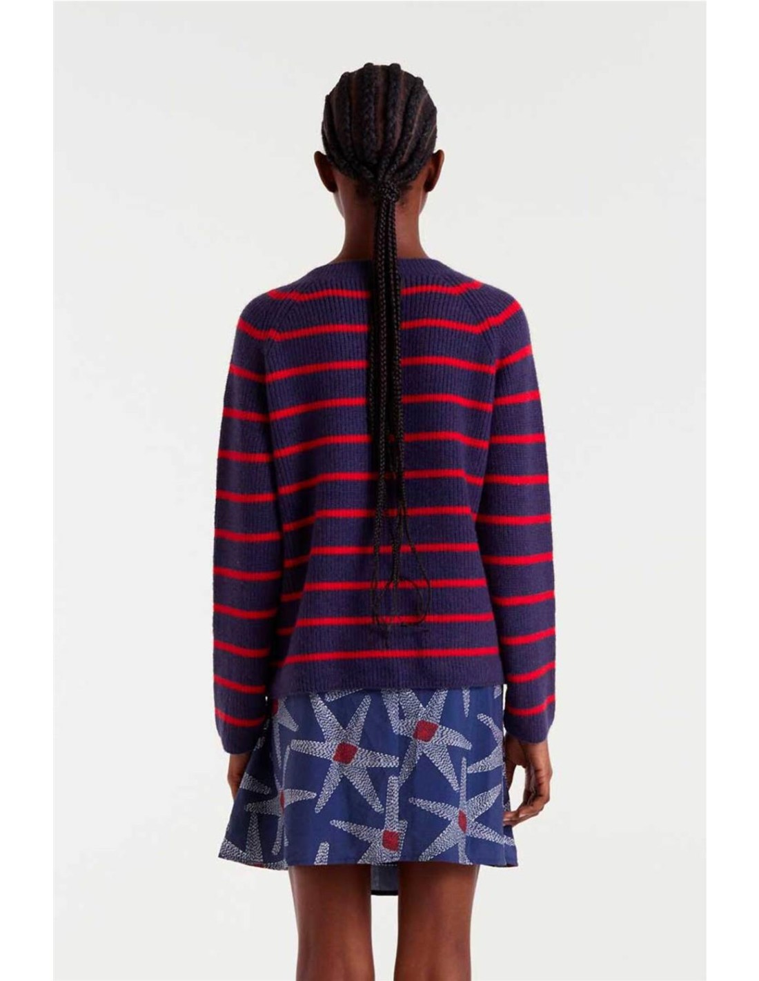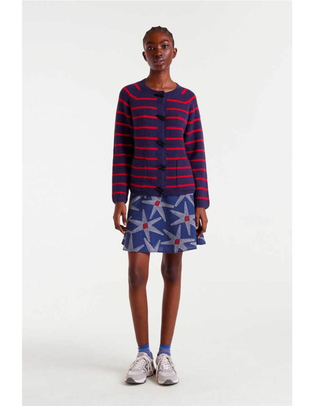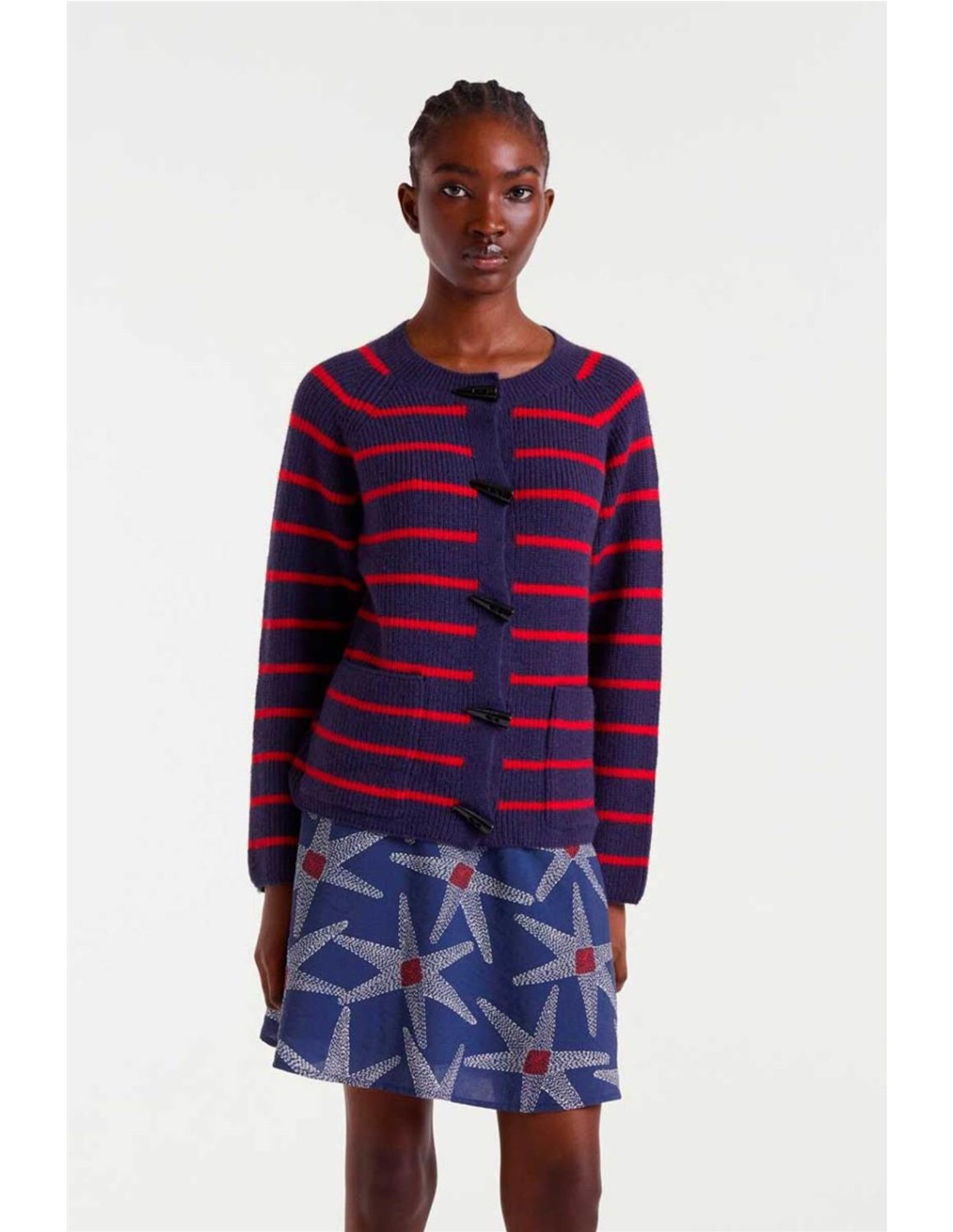 Cárdigan Compañía Fantástica de raya marinera navy blue y rojo