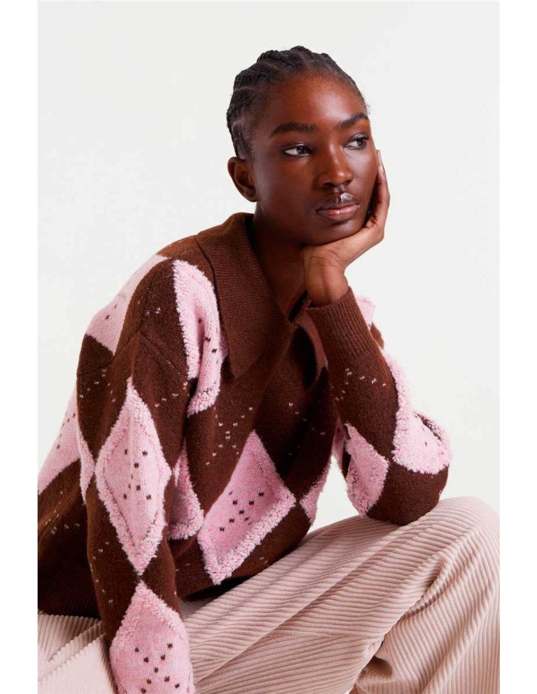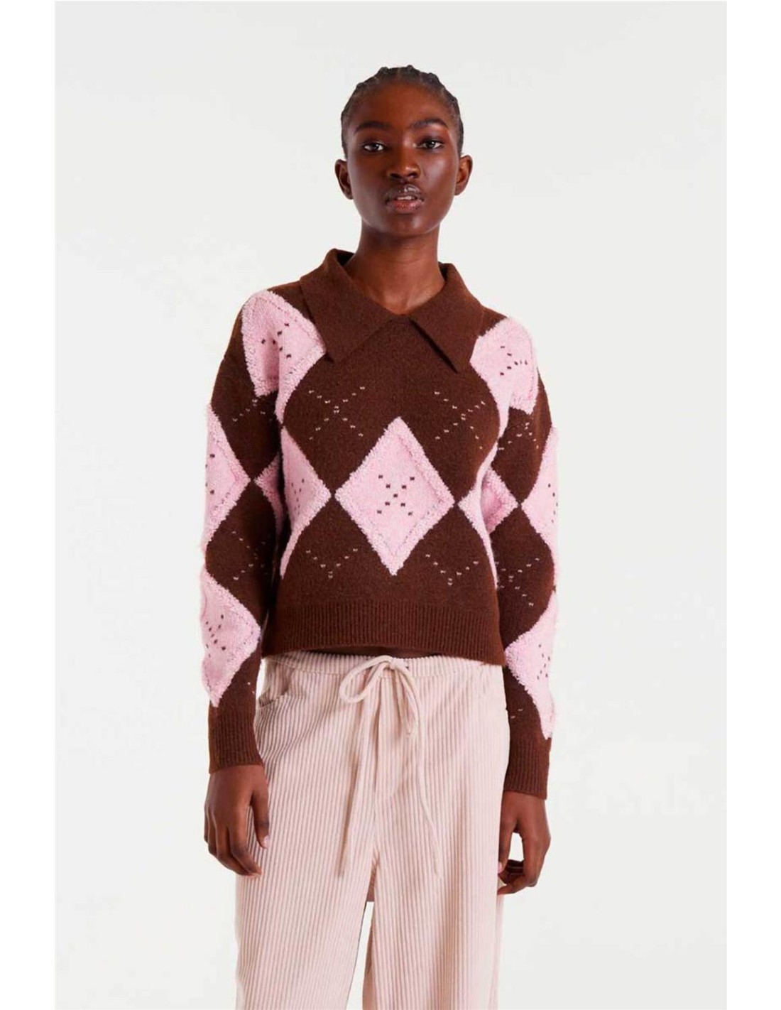 Jersey Compañía Fantástica de rombo rosa y marrón