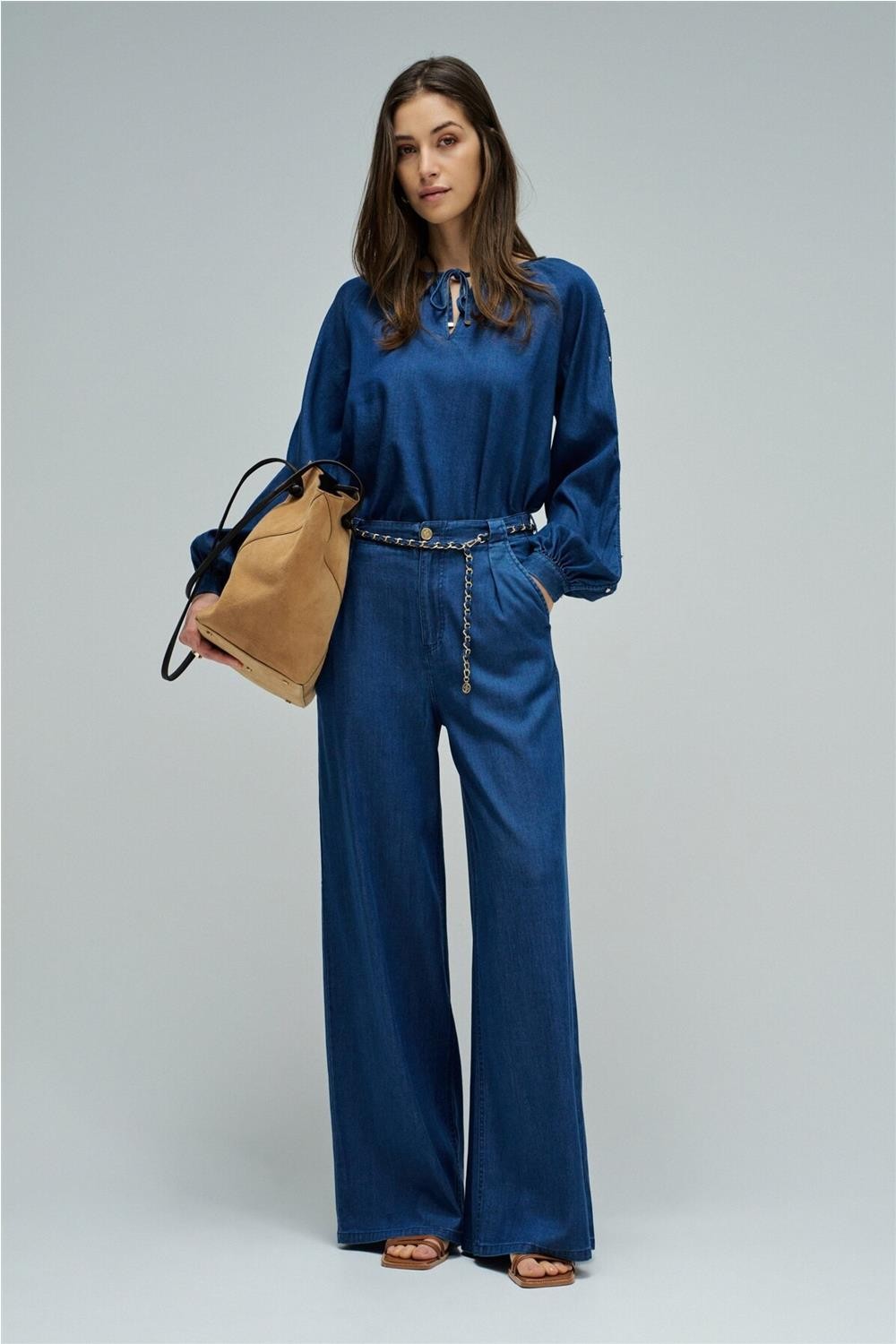 Pantalón Salsa chino con pierna wide en lightdenim