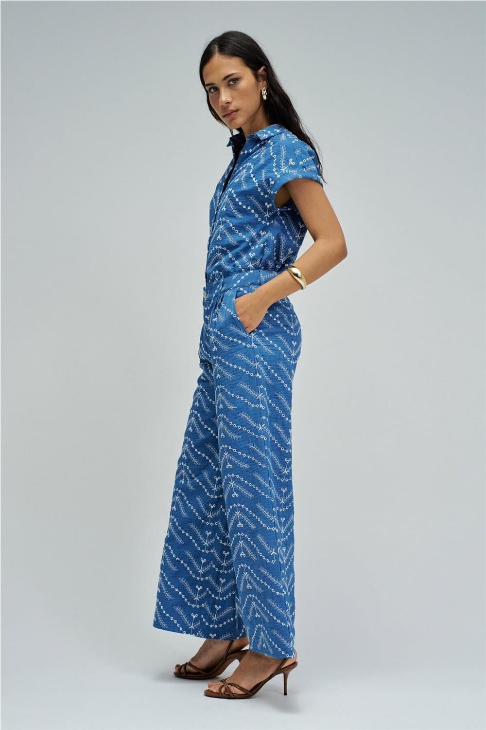 Pantalón Salsa chino cropped wide con bordados
