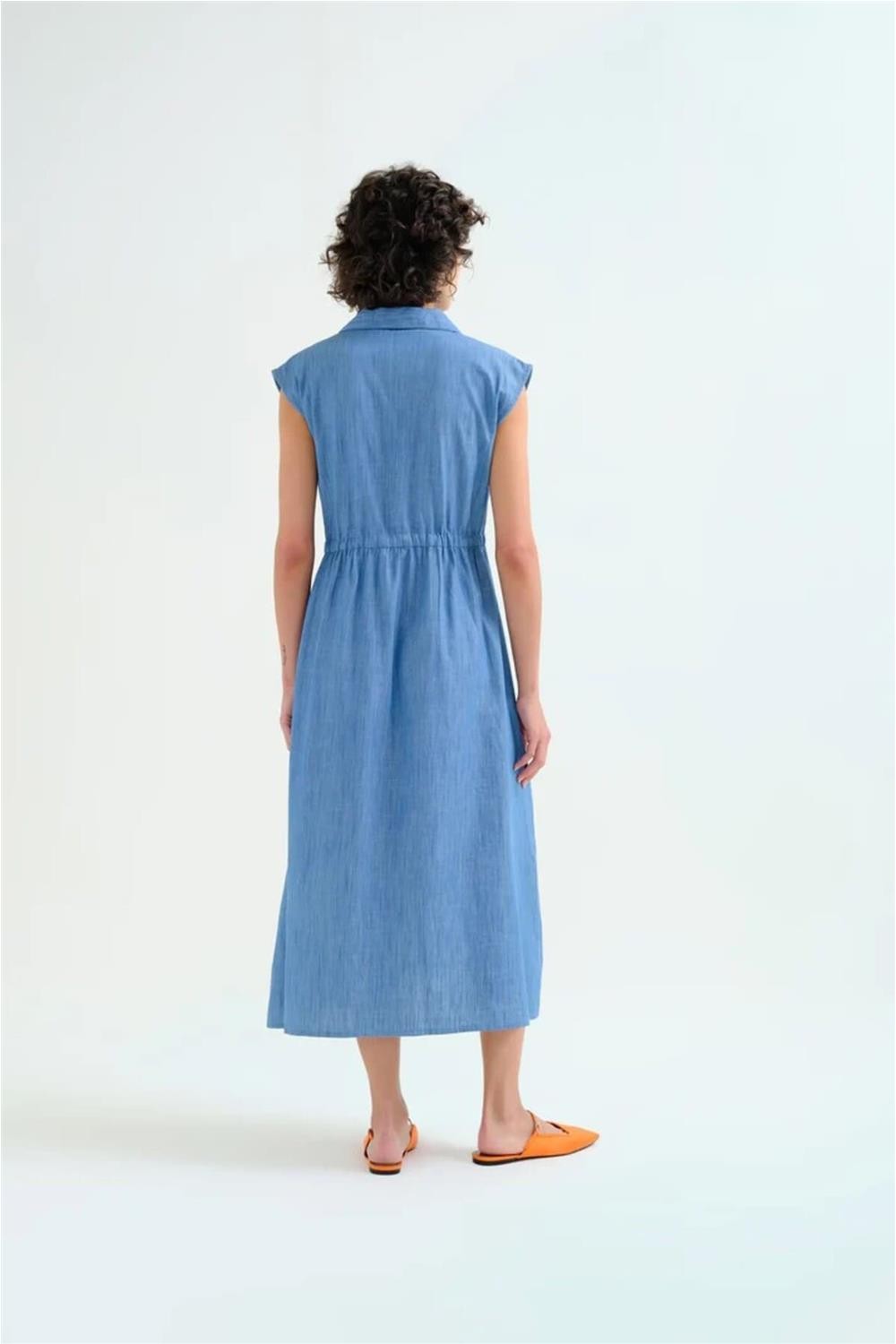 Vestido midi Compañía Fantástica 100% algodón chambray azul claro
